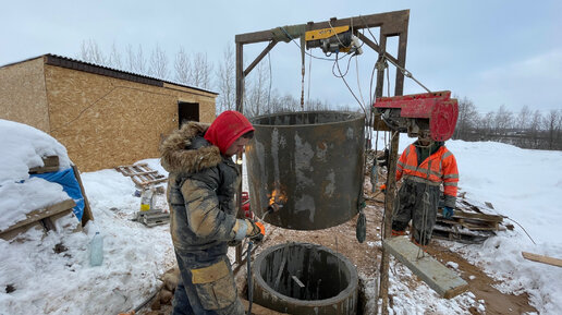 Завершение строительства колодца на плывуне с камнями в пос.Микляиха. 9 колец- отличный результат!