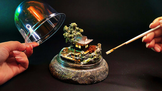 Создаем зимнюю азиатскую диораму под пластиковым куполом (8 см в диаметре)