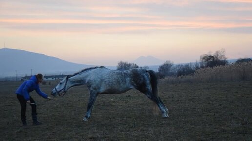 Показываем с лошадью трюки на фоне гор🌄