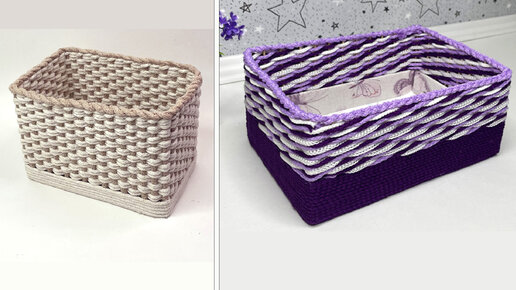 Больше не покупаю в магазине плетеные корзинки, плету сама из веревки. Покажу какая красота для дома у меня получается. 2 идеи