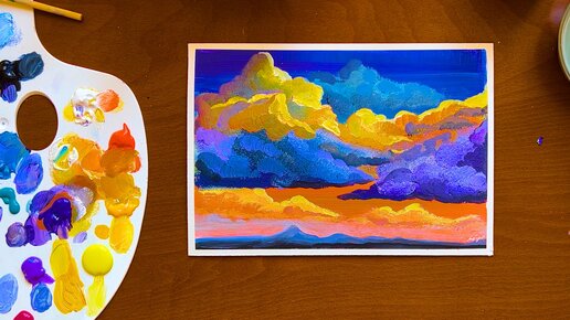 Как нарисовать красивое небо, облака и грозовые тучи. Обучающее видео по рисованию акриловыми красками