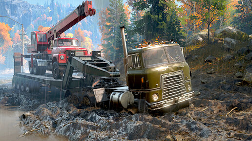 с транстаром мы быстро перегнали большую фуру из нужного места в лес, но в пути столкнулись с трудностями и... (симулятор Snow runner )