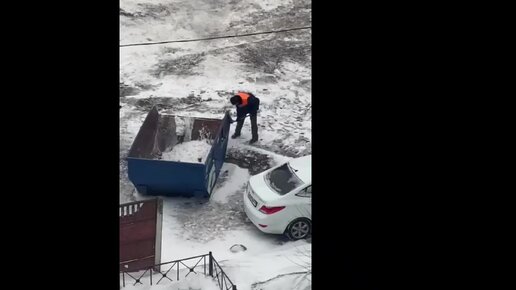 Дворник скинул снег в мусорный контейнер, но жильцы дома этого не оценили