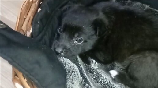 Бездомный щенок искал маму.