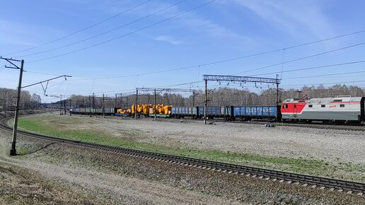 Электровоз 2ЭС6 с грузовым поездом. Как в Кемеровской области с вагонов металл воруют.