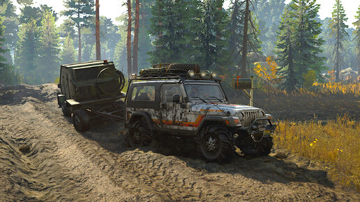 С Jeep Wrangler мы с трудом доставили тяжелый груз к месту назначения в лесу (симулятор Snow runner )