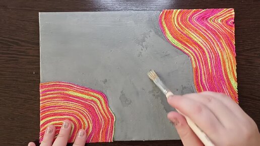 Картина красками и пряжей.