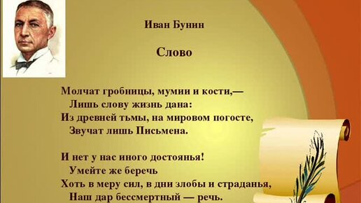 Слово ("Молчат гробницы, мумии и кости"), Бунин