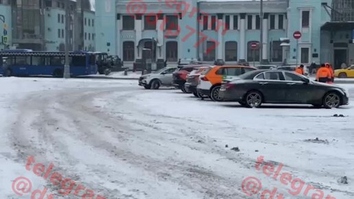 Снегопад в Москве. Автомобилисты переходят на лыжи.