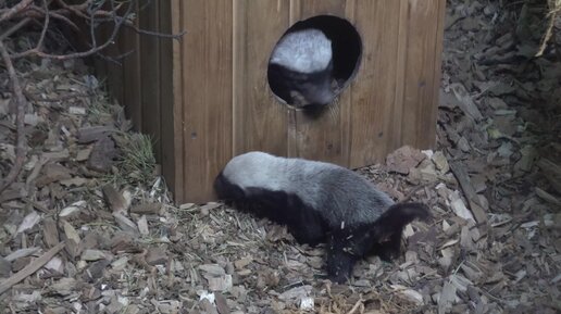 Самка медоеда приучает своего медоедика гулять самостоятельно. 19.02.2023