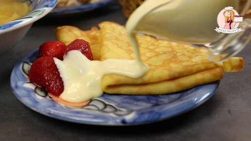 Тонкие нежные яичные блинчики с заварным соусом с белым шоколадом