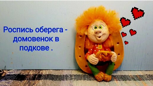 Роспись оберега - домовенка на подковке акриловыми красками.