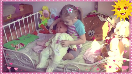 Девочка 4 года играет в куклы - Как переодеть малыша -