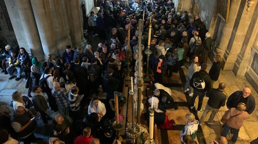 Дорогие друзья! ⛪Сегодня вечером в Храме Воскресения Христа очень много людей. Они все стремятся попасть в Кувуклию