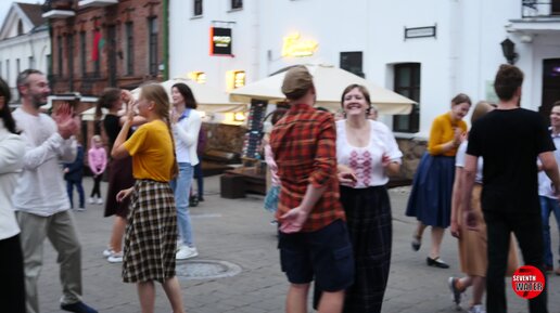 Очень энергично! Вот такие народные танцы вызывают желание пйти с ними танцевать. Народный коллектив "Талака" отплясывают в центе города.