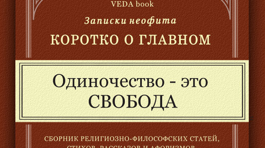 Одиночество - это СВОБОДА / Коротко о главном. Записки неофита. Веды, философия, религия, психология