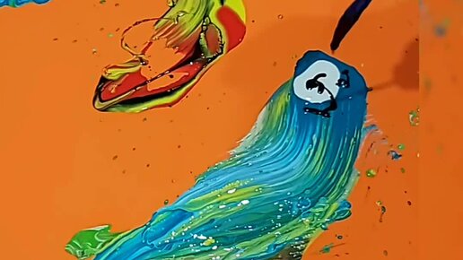 Выливаем абстрактную картину в технике флюидарт и вытягиваем образы фантастических птиц и рыб из вылитой краски.🤗🖼🎨
