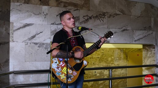 Талантливый парень поет душевно в подземном переходе. Остановился послушать.
