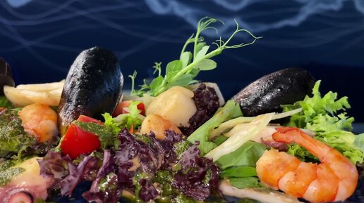 Теплый салат с морепродуктами