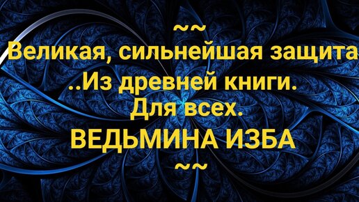 ВЕЛИКАЯ, СИЛЬНЕЙШАЯ ЗАЩИТА...ИЗ ДРЕВНЕЙ КНИГИ..ДЛЯ ВСЕХ..ВЕДЬМИНА ИЗБА_ИНГА ХОСРОЕВА