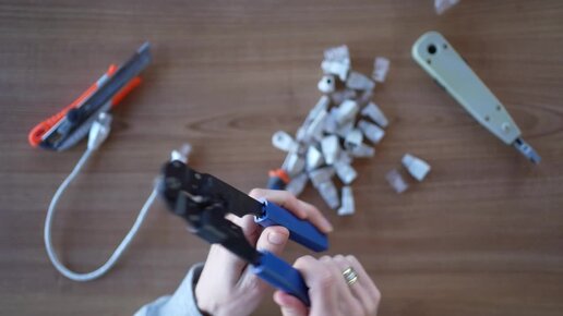 Как обжать интернет кабель витой пары (разъемов RJ-45 сетевого кабеля) без инструмента и с Кримпер для обжима