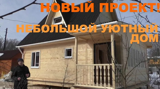 Каркасный дом 5.0 x 8.0 под ключ с мансардой. Недорогой дачный дом с верандой и крыльцом на сваях.