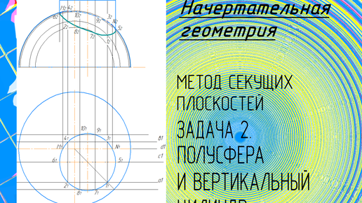 Метод секущих плоскостей. Задача 2. Полусфера и вертикальный цилиндр