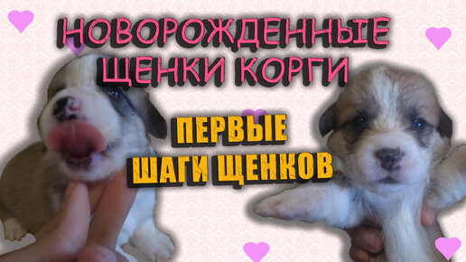 Новорожденные щенки Корги. Впервые едят корм в 25 дней.