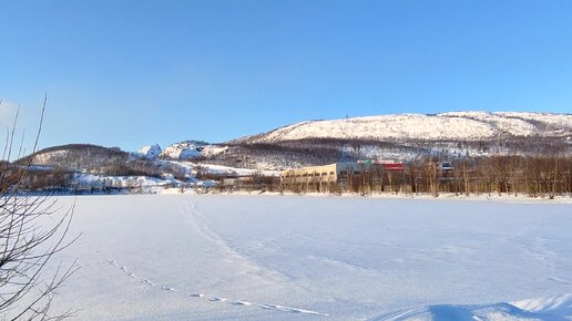 Мурманск. Озеро Ледовое. Красивое морозное утро. Вид на Кольский пр. дом 84