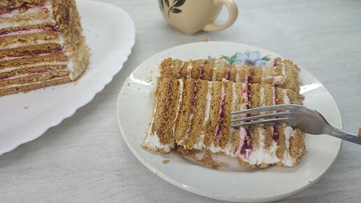 Торт Медовик. Мой любимый рецепт с клюквой. Крем на сметане.