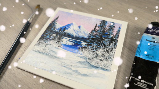 Теперь зиму рисуем только так. Любуюсь 3-й картиной за неделю, такой белоснежный пейзаж получается! Рисуем вместе