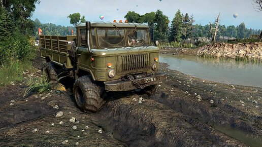 Газ 66 на арочных колесах, эвакуировал из болота заглохший Хаммер ( SnowRunner )