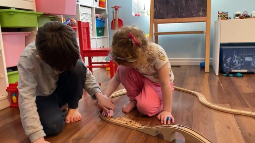 У Тима и Эли аутизм. Несмотря на это у них есть совместная игра. Мы начинали их учить с простых игр на взаимодействие.