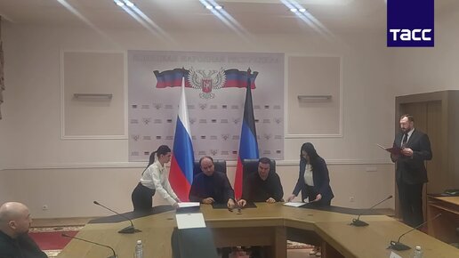 Премьер-министр ДНР Виталий Хоценко и вице-губернатор Тульской области Вячеслав Федорищев подписали план мероприятий на 2023-2024