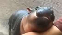 Шок! Детёныш карликового бегемота пытается съесть человека.