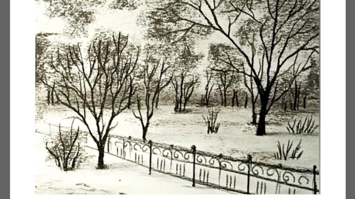 ✍️❄✍️Парк зимой. Монохромный рисунок карандашом и пастелью. ✍️❄✍️