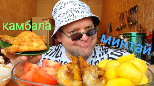 МУКБАНГ жареная камбала и минтай/Обжор картоха и помидоры
