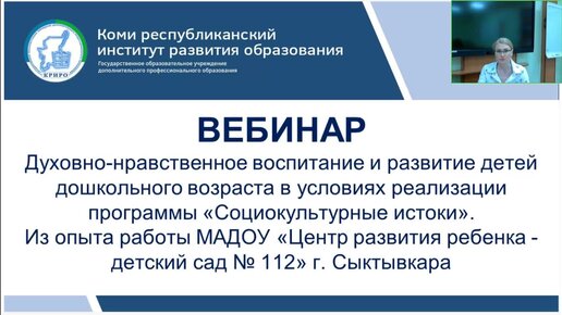 Вебинар «Духовно-нравственное воспитание и развитие детей дошкольного возраста в условиях реализации программы «Социокультурные истоки»