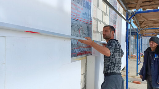Утепление фасадов пенопластом, как трехметровым правилом проверить ровность, как наждачными тёрками выровнить, сошкурить неровности фасадов
