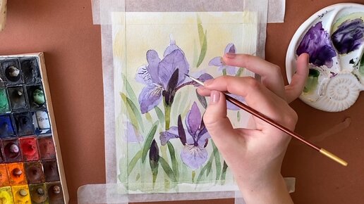 Ирисы в саду. Пишем акварелью #акварельдляначинающих #пошаговоерисование #живопись