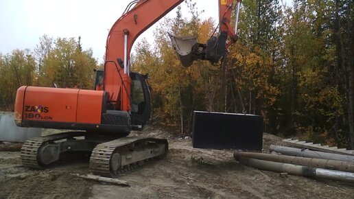 хитачи пробует поднять блок жб трубы