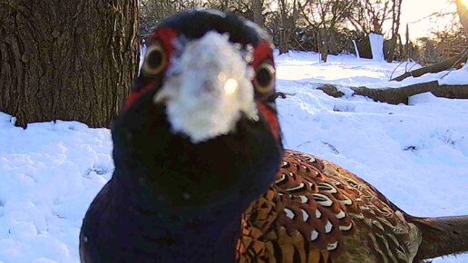 Как фазан добывает корм зимой