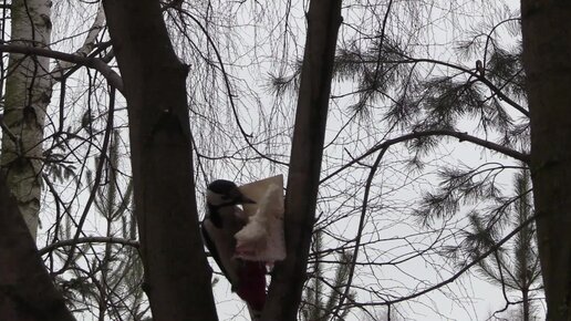 Каждая птичка пытается навести свои порядки у зимней кормушки