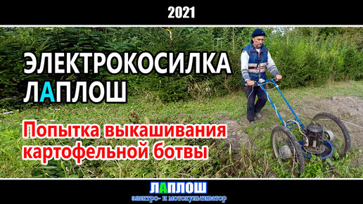 Попытка выкосить картофельную ботву электрокосилкой Лаплош. Получается не очень, много бурьяна в междугрядьях...