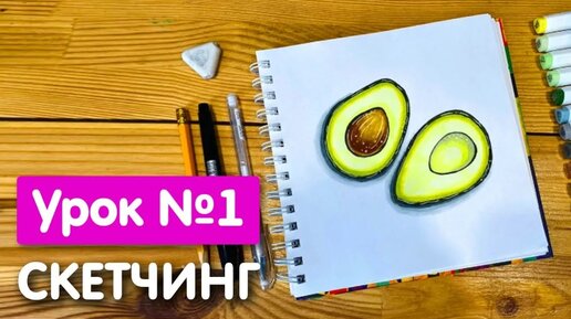 Мини-курс «Скетчинг» Урок 1. Рисунок скетч маркерами для начинающих. Авокадо