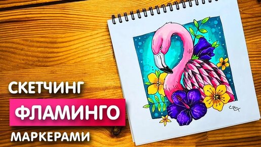Рисунок скетч маркерами "Фламинго" для скетчбука | Срисовка картинки для начинающих