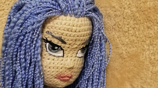Лучший способ крепления волос из пряжи для вязаной куклы.