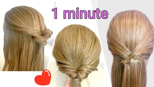 3 супер легкие и быстрые прически за 1 минуту,3 super easy and fast hairstyles in 1 minute,
