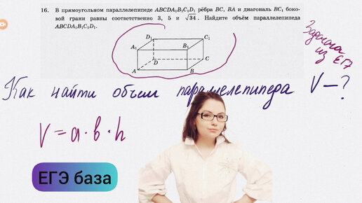 Как найти объем прямоугольного параллелепипеда, если известно только 2 измерения. Задача из базового ЕГЭ по математике