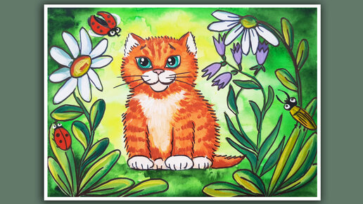 Как нарисовать милого котика. Рисуем котика гуашью, акварелью и черным маркером. Как просто нарисовать милого мультяшного кота.